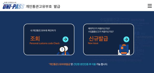 - '관세청 유니패스' 앱 또는 모바일 웹 접속