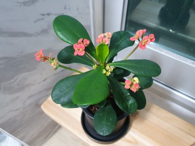 햇빛 잘 드는 곳에서 과습만 주의하면 꽃기린은 누구나 쉽게 키울 수 있는 식물입니다.